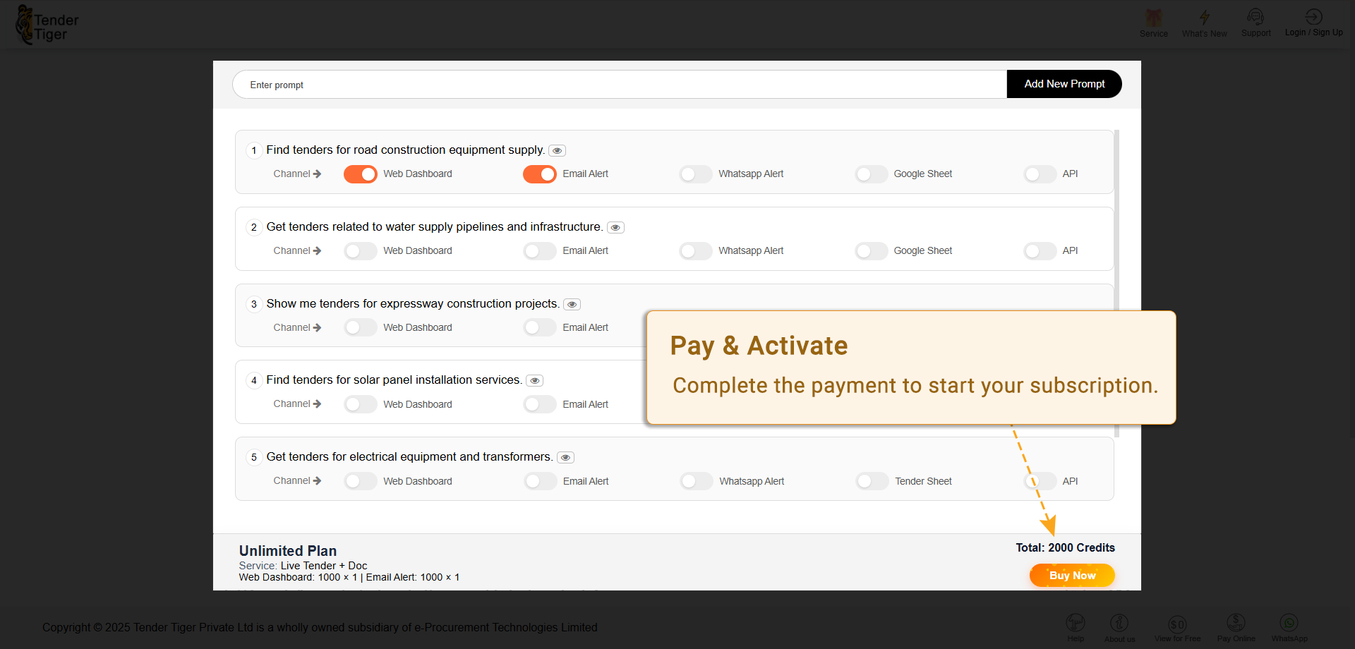 Just ₹1000/Month/Prompt • Unlimited Tenders