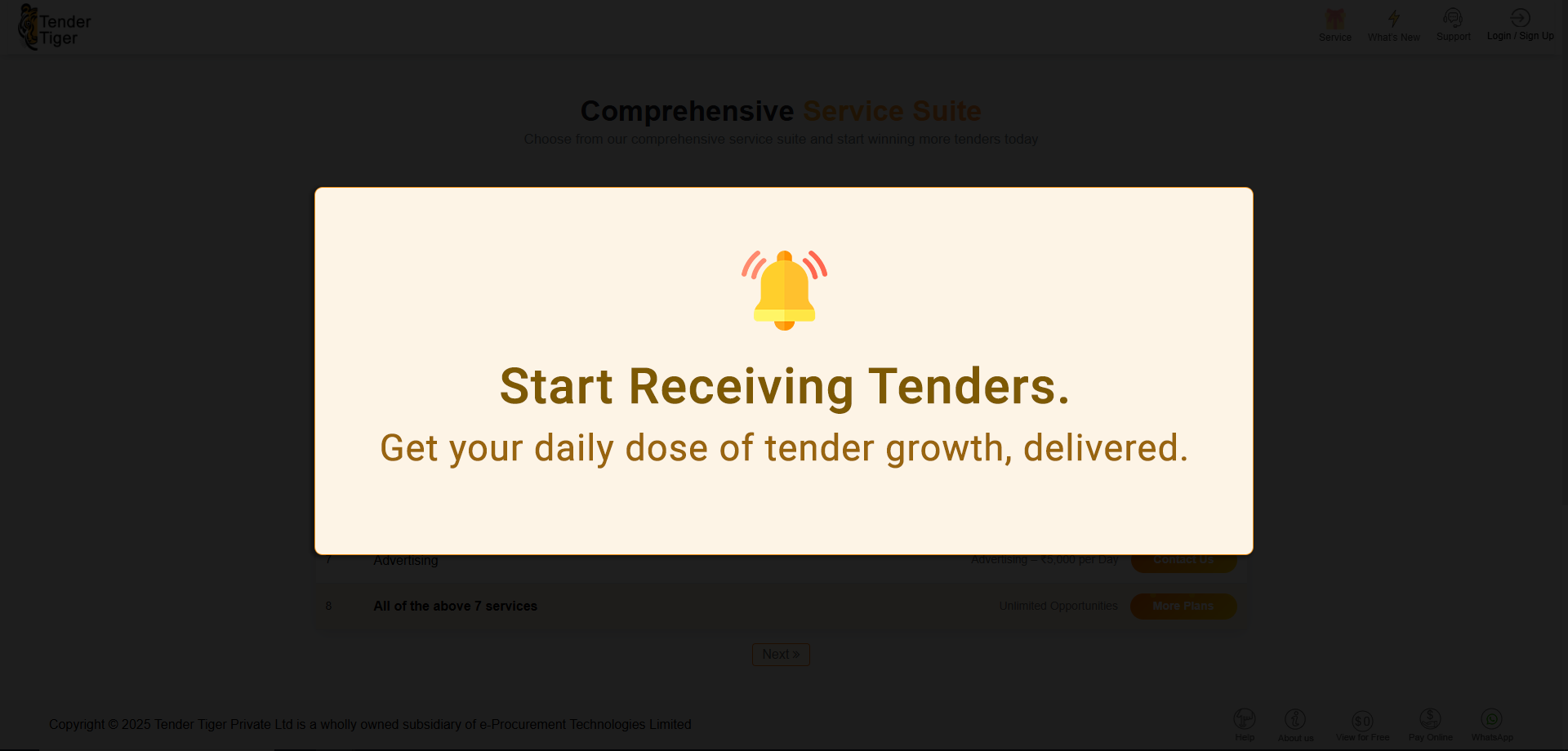 • Get alerts via Web, Email, WhatsApp, TenderSheet, or API